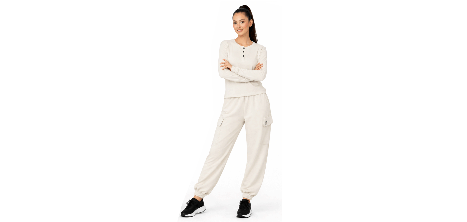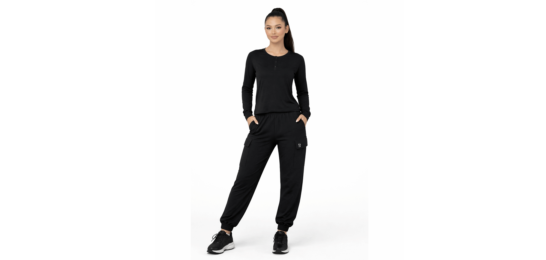 The soft fabric feels gentle against the skin while retaining its shape throughout the day, making these joggers perfect for wellness routines, travel, lounging, or casual everyday wear.